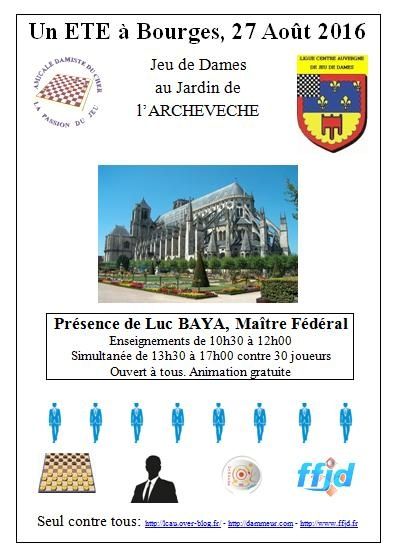Chers damistes, Dans le cadre d'un été à Bourges, le Samedi 27 Août 2016, Luc BAYA (Maître Fédéral de Lille) dispensera des enseignements gratuits au Jardin de l'Archevêché de 10h30 à 12h00.